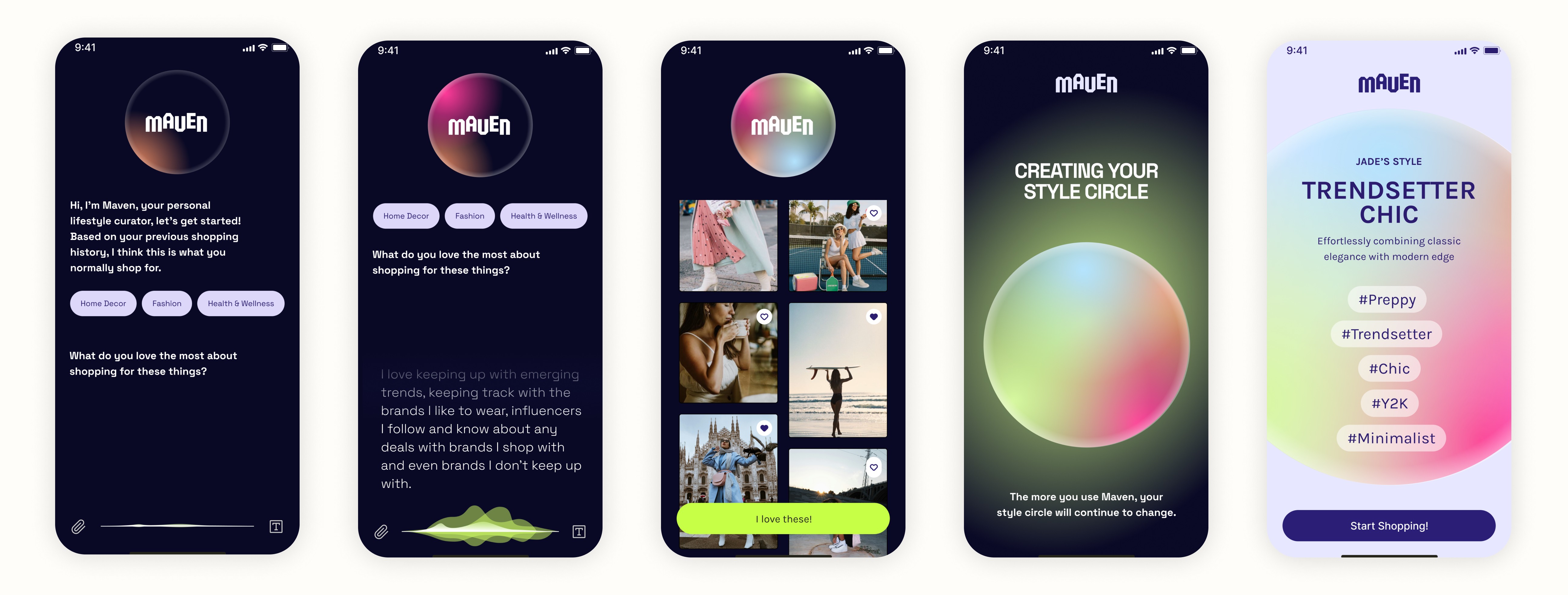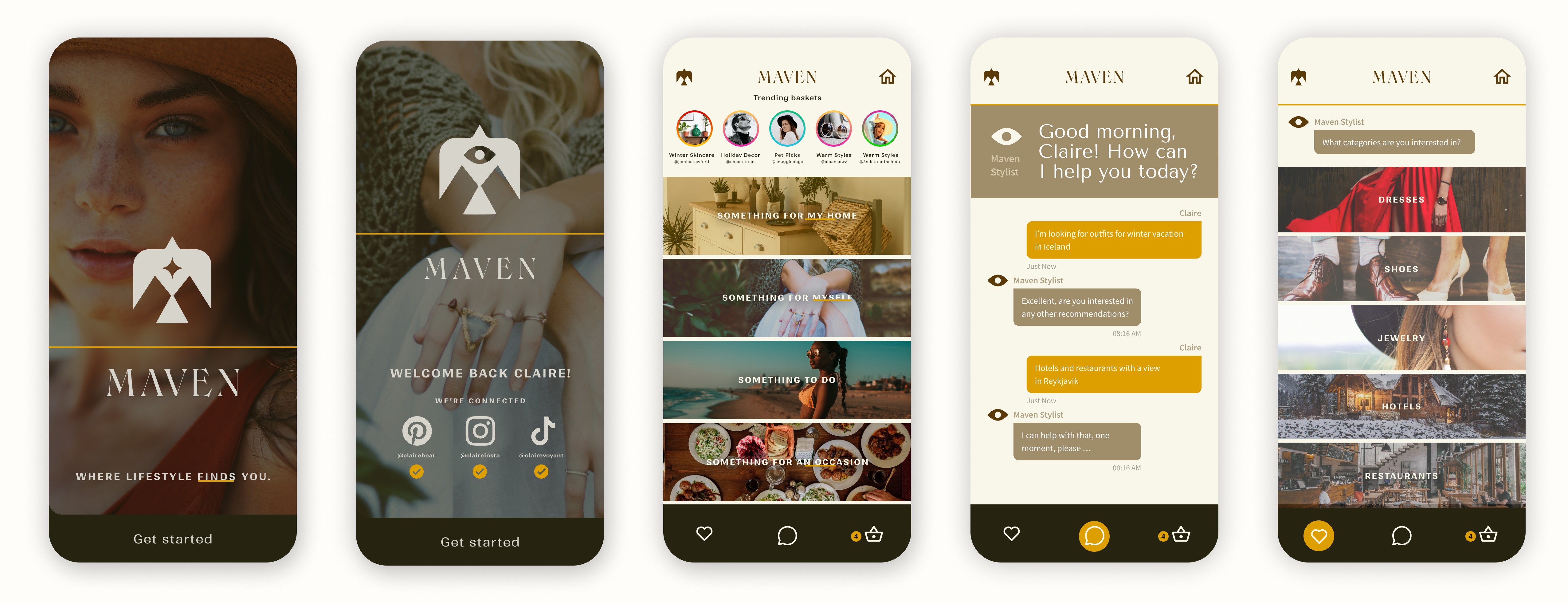 A neighboring venture building team tapped our design studio for help designing a modern, AI-powered e-commerce platform for both consumers and influencers alike. After the scope of the project was determined from a rough concept, I was pulled in to help with a new visual design and enhancing the prototype to fully visualize the concept for potential investors.