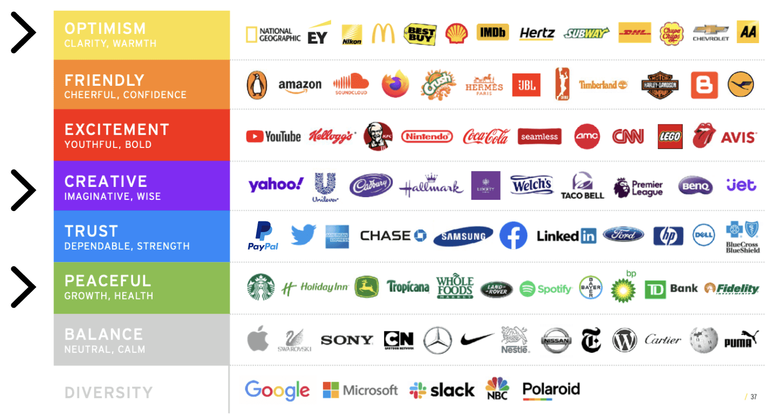 utilized color theory to pick popular base colors that read: imaginative, intelligent, health, and growth
